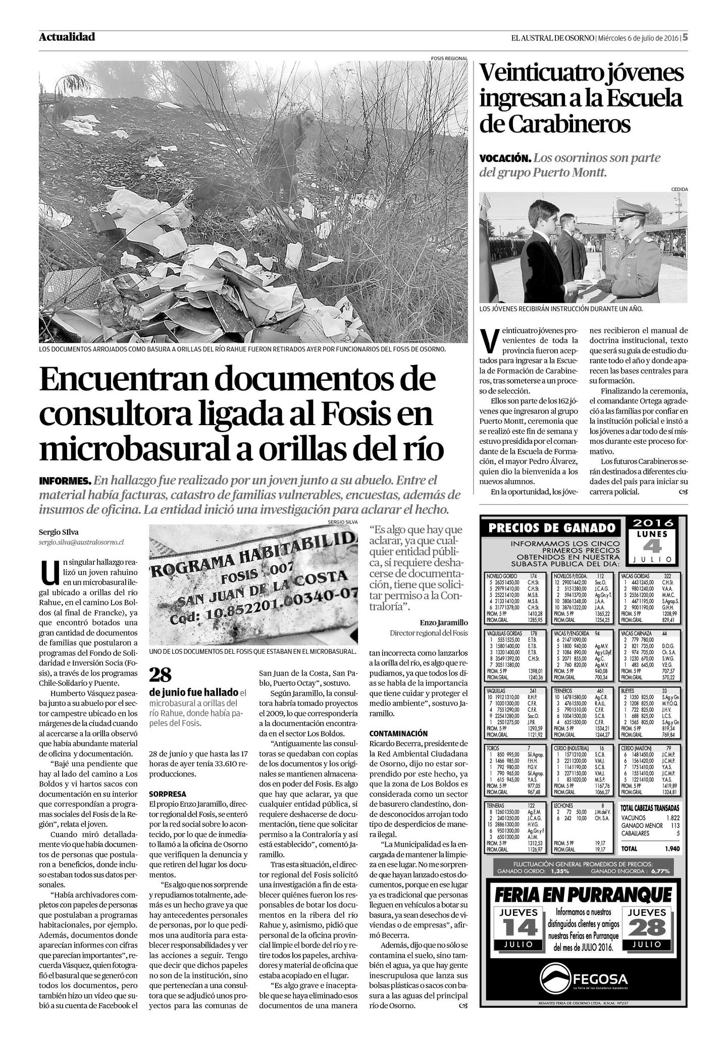 El 28 de junio de 2016, estalló una noticia que conmovió el norte de la Región de Los Lagos.  Un vecino de Osorno descubrío en un sitio eriazo pilas de documentos institucionales.  Un medio ciudadano local (http://www.diarionoticias.cl, noticia), adjudicó estos documentos a la Municipalidad de Osorno.  Inmediatamente, el mismo medio destacó que, Humberto Vásquez, el testigo, habría afirmado que se trataban de documentos de la Municipalidad de Puerto Octay y San Pablo, correspondiente al FOSIS.  Este último organismo a través de Henzo Jaramillo, su Director local, emitió un comunicado negando la posibilidad haya sido una acción del organismo que dirige (ver declaración).